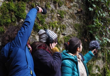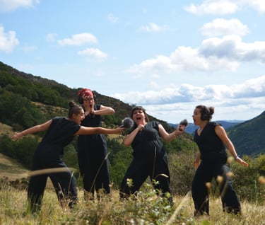 Nous sommes un collectif créé en octobre 2022 par Chimène Lombard, Juliette Meulle et Coline Lafontaine. Nous sommes respectivement et collectivement comédiennes, poétesses, artistes sonores, chercheuses universitaires, autrices. Notre collectif se place à la croisée de trois pratiques : l'écriture, le son et le théâtre.