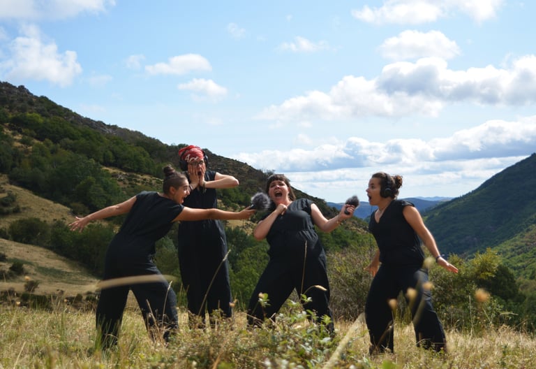 Que ce soit sous forme de fiction sonore ou sous forme scénique, nos ambitions sont les mêmes : raconter des histoires, oraliser de la poésie, travailler des univers sonores dans la simplicité et la convivialité. Nous souhaitons travailler des formes théâtrales tout terrain, pensées pour les salles de spectacles, de petits espaces intérieurs - appartements, cafés, tiers-lieux...- comme pour l'extérieur.